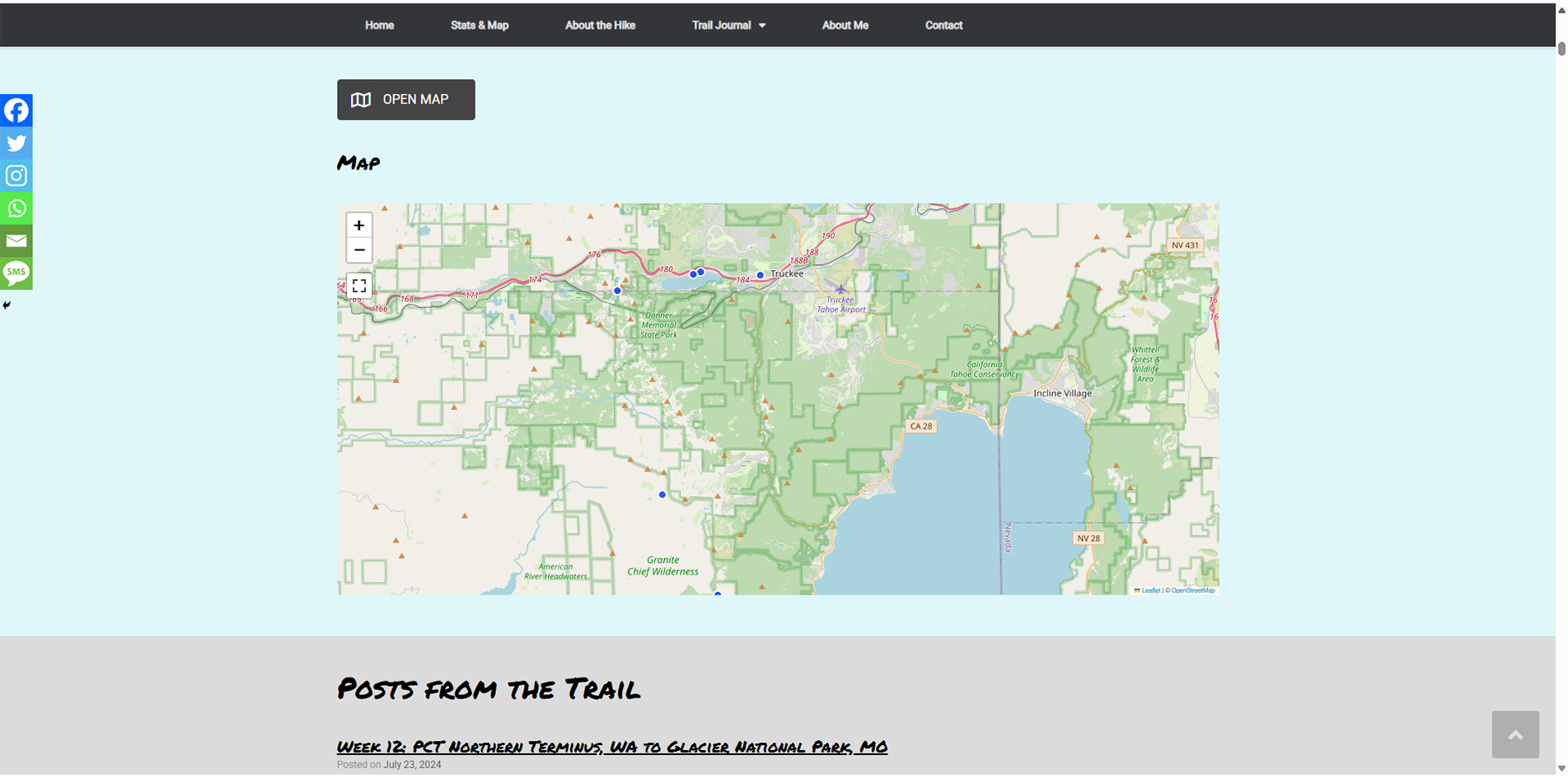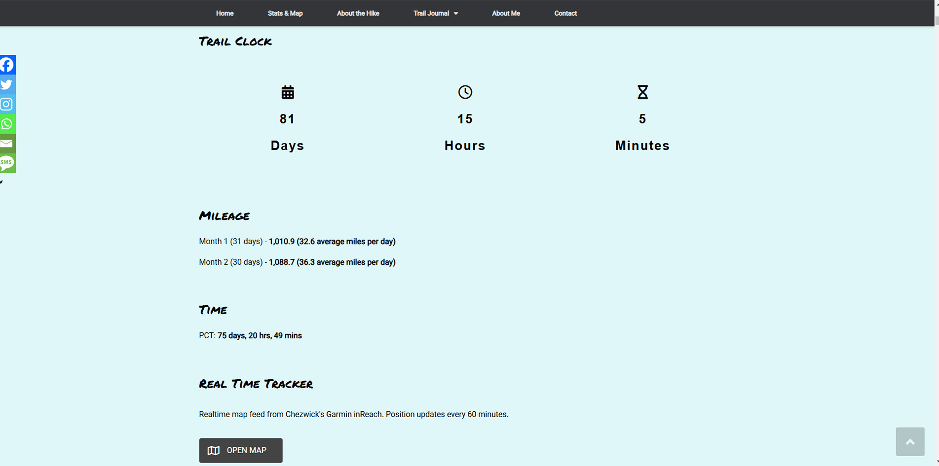 Journal and tracker map for a premiere long distance hiker.