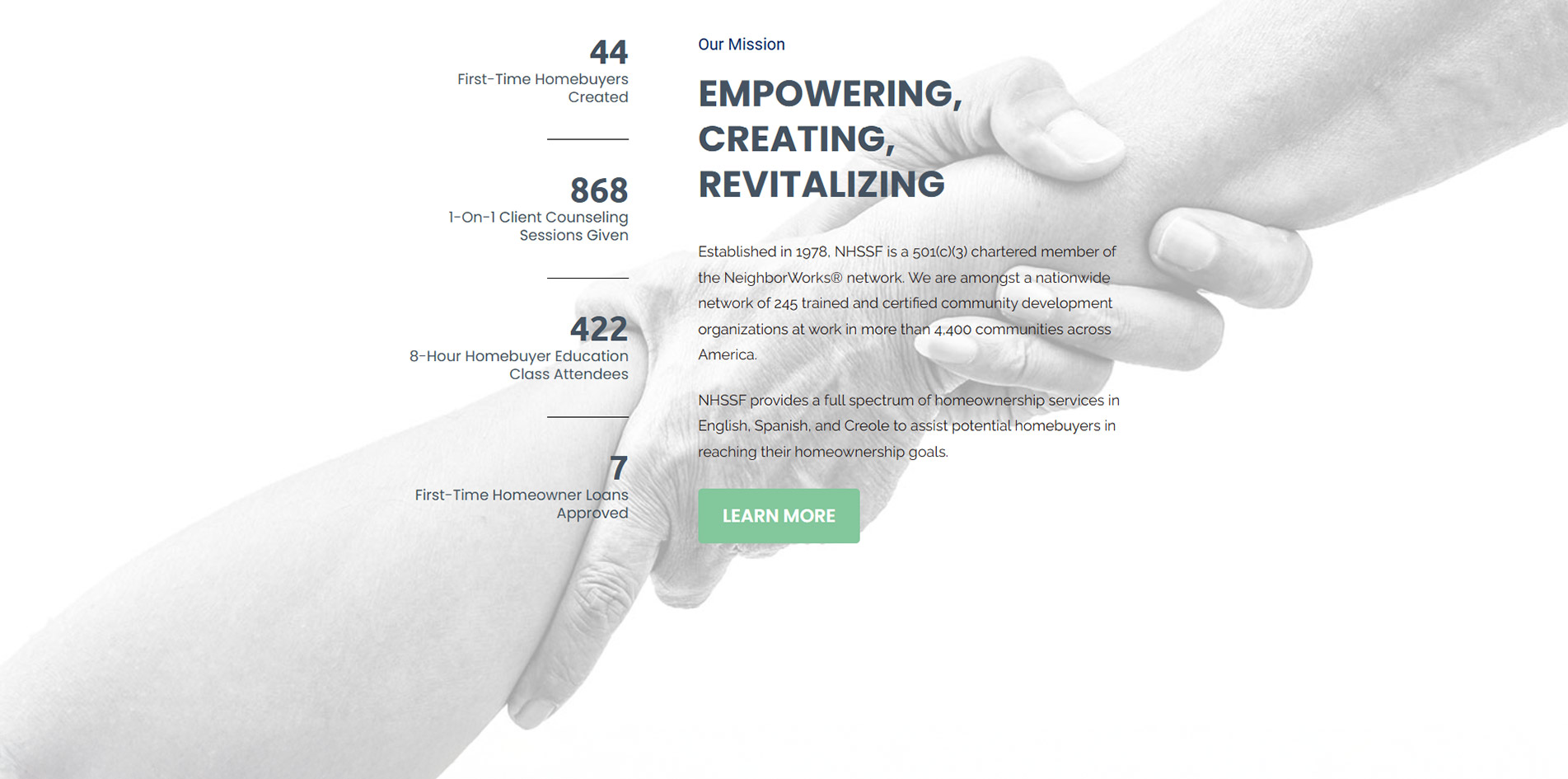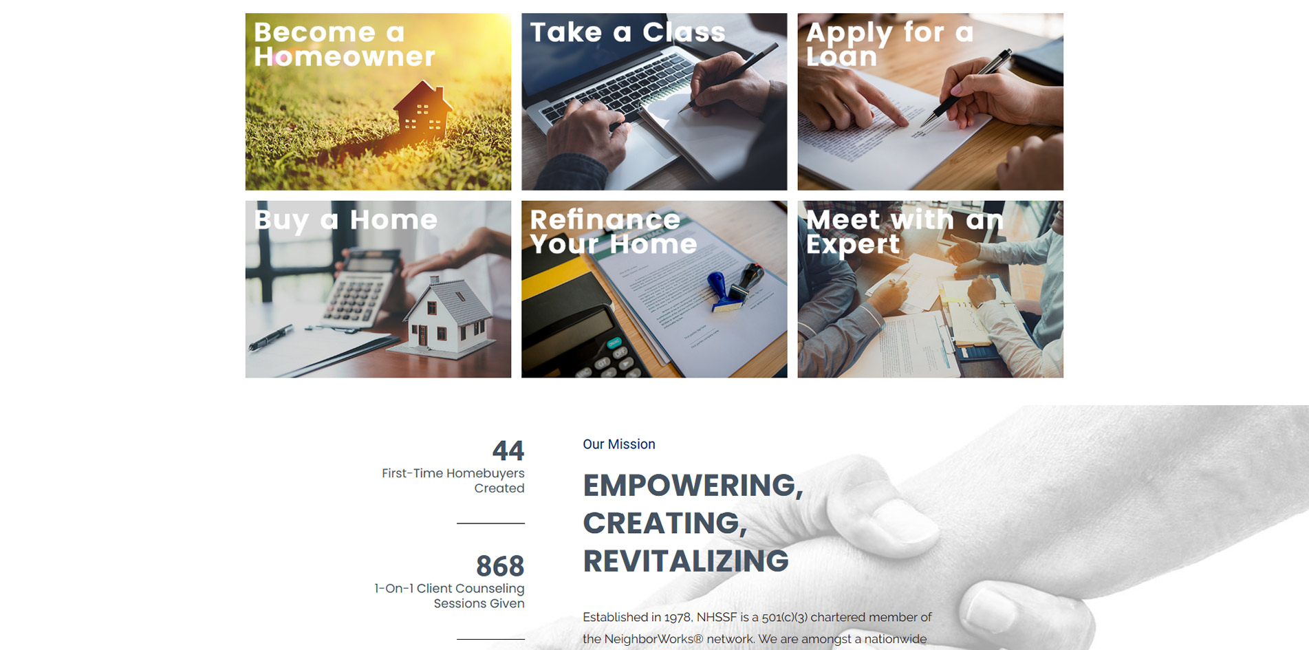Redesign prototype created for Neighborhood Housing Services of South Florida.